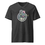 Dark Heather V-neck t-shirt.
